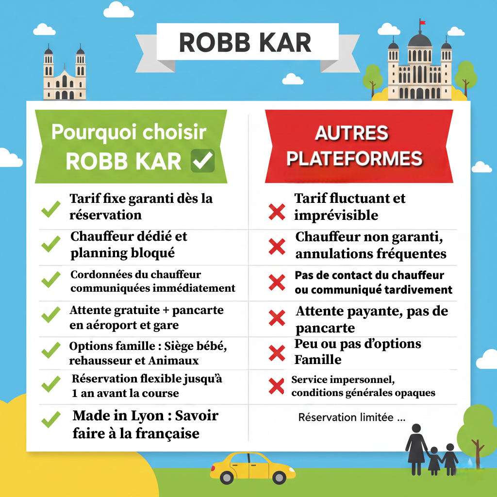 Depuis 2019, ROBB KAR est le spécialiste de la réservation VTC planifiée à l’avance à Lyon et dans sa région.